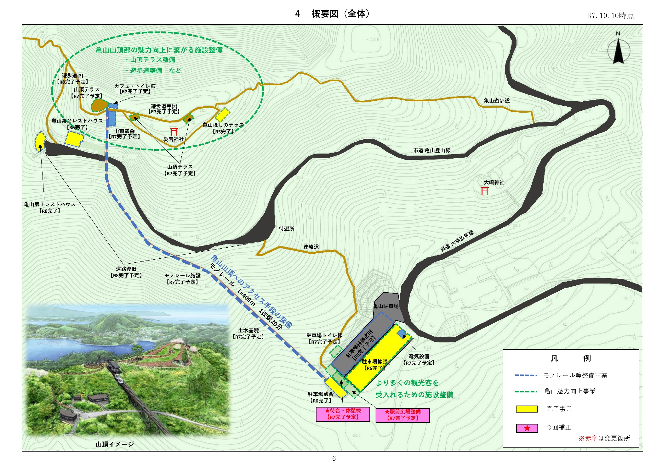 モノレールの整備事業は、上限10億円のデジタル田園都市国家構想交付金を活用したため、当初の計画事業費は9.9億円でスタートしました。その後、物価高騰や工法変更によって増額し、さらに山頂の魅力化向上に力を入れたことで、現時点で22.8億円となりました。
