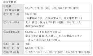 そして妥当な目標として、年間乗車人数を6万2000人に設定。年末年始や荒天を除いて年間338日営業し、1日あたり183人、1往復あたり8人でクリアできる目標だからです。