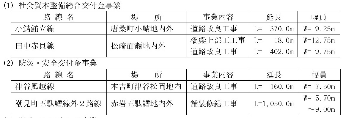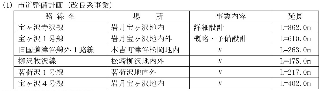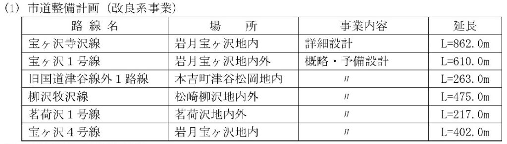 ・市道整備計画の改良系としては津谷風越線(1位)が初めての着工路線となる